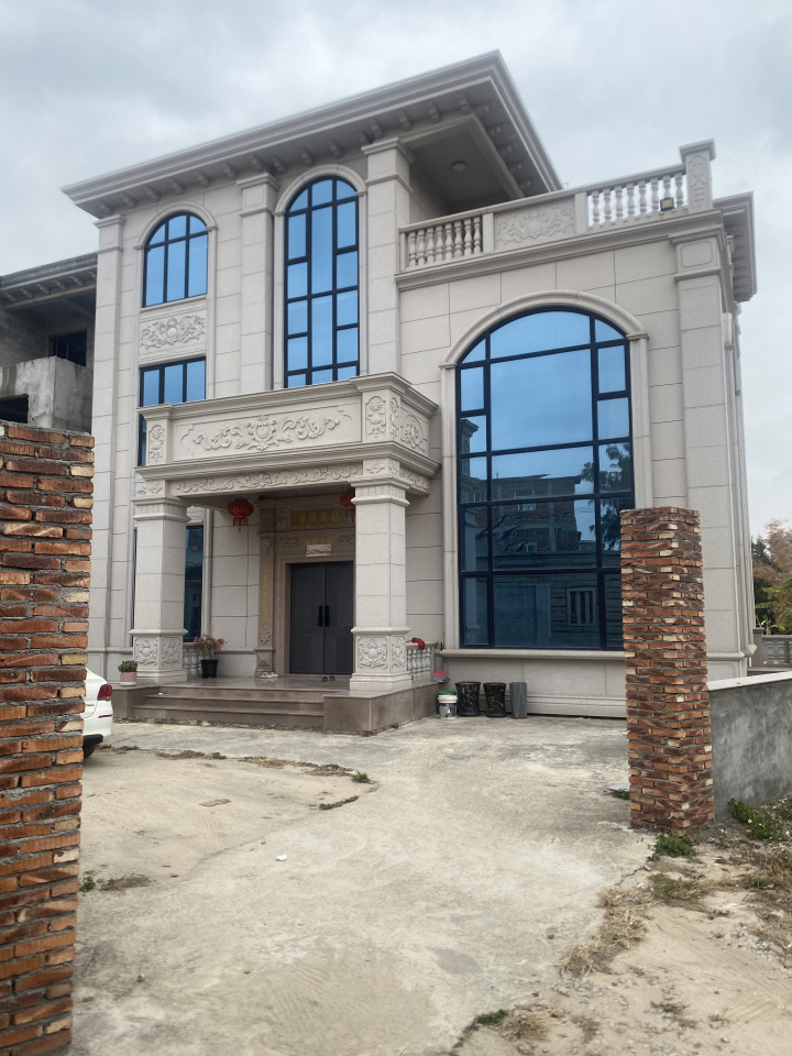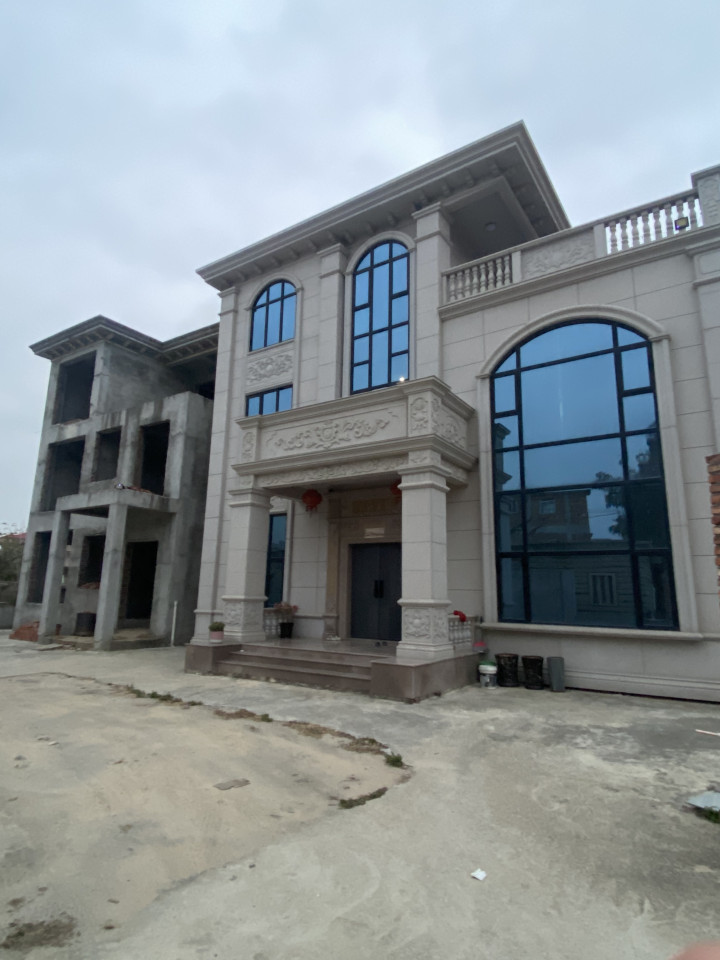 在村民看来,施纯芳突然“发家”大概也就近几年的事。因为长期以来,其一家都在石头房里生活,但3年前,他突然推倒老房子,给自己修建了三层高的小别墅,装修也格外精致,外墙还是大面积的深蓝色落地玻璃。如今,其边上在建的别墅,整体框架结构也已搭好,两栋别墅门前小院的外墙,也都用红砖砌好了,可如今所有工程都戛然而止。